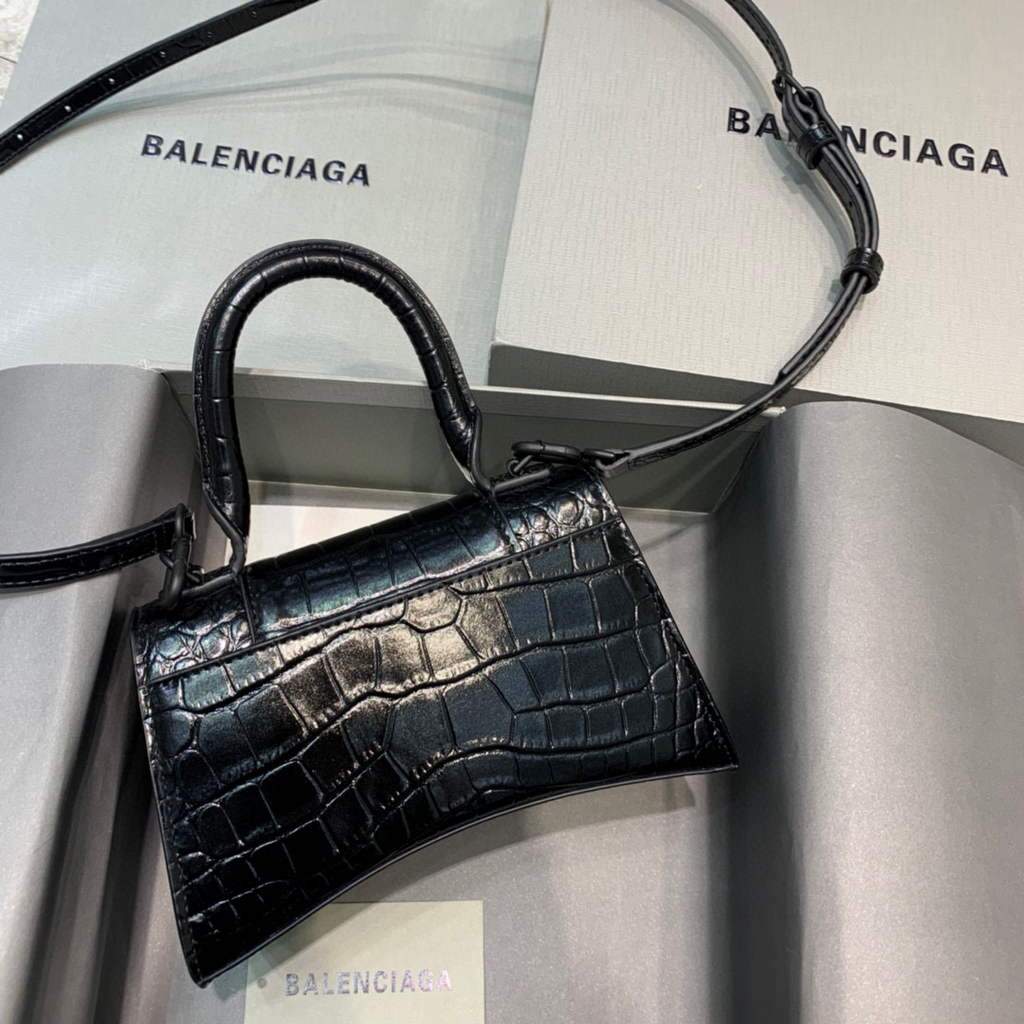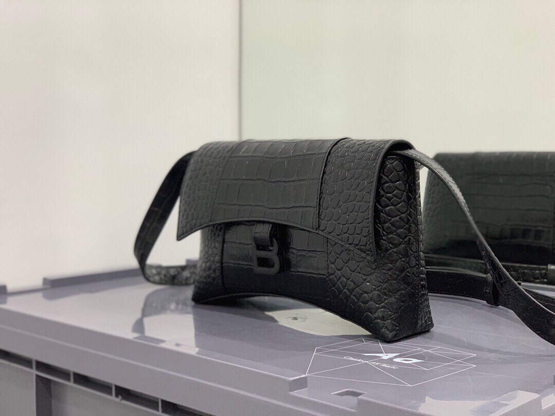Balenciaga 671355 Women’s Downtown XS Shoulder Bag Crocodile Embossed black buckle